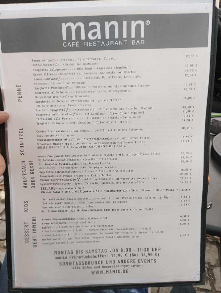 Welcome to manin St.Wendel, a charming eatery nestled in the heart of St. Wendel, Germany. Located at Am Schloßpl. 10, this restaurant perfectly marries convenience and delightful culinary experiences. As you step inside, the cozy ambiance invites you to unwind, especially after a day of shopping.
